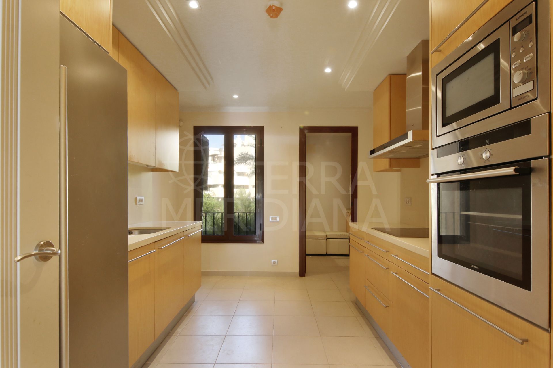 Situado en la primera planta, el apartamento disfruta de vistas a los jardines y al Mediterráneo desde sus dos terrazas privadas. Un recibidor conduce a los interiores luminosos y espaciosos, donde la distribución ha sido cuidadosamente diseñada para ofrecer comodidad y funcionalidad. La cocina totalmente equipada, con electrodomésticos integrados y espacio para una mesa de desayuno, conecta con un lavadero independiente. El elegante salón-comedor se abre a una amplia terraza cubierta, perfecta para comer al aire libre o simplemente relajarse mientras se disfrutan de las tranquilas vistas al mar y al jardín.