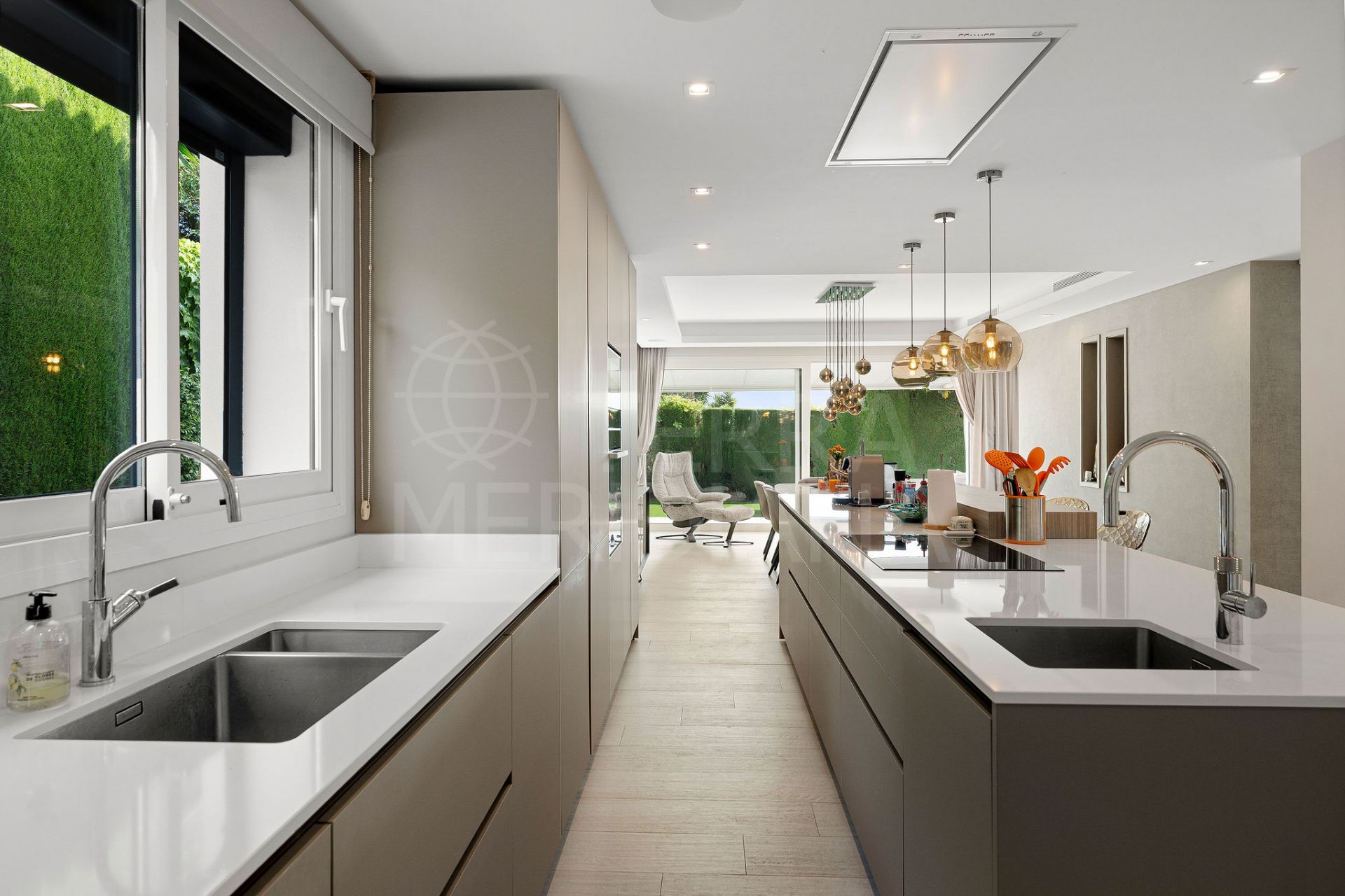 Descubra la combinación perfecta de luz, amplitud y diseño refinado en esta impresionante villa familiar completamente renovada. Al entrar, el amplio espacio de salón, comedor y cocina de concepto abierto le da la bienvenida con una abundante luz natural. Este interior fluye sin interrupciones hacia unos jardines meticulosamente cuidados, que cuentan con una piscina climatizada, un encantador cenador y terrazas bañadas por el sol, sombreadas por elegantes velas arquitectónicas.
