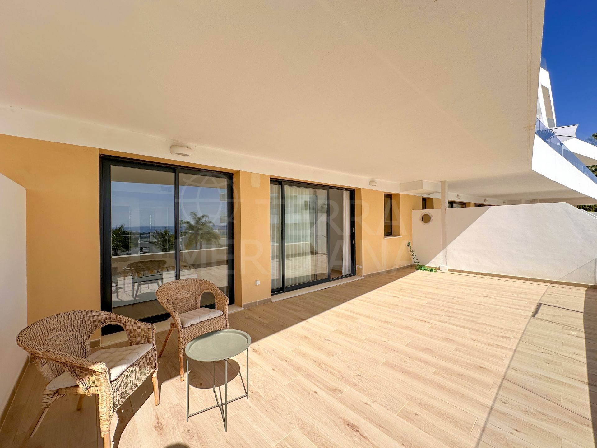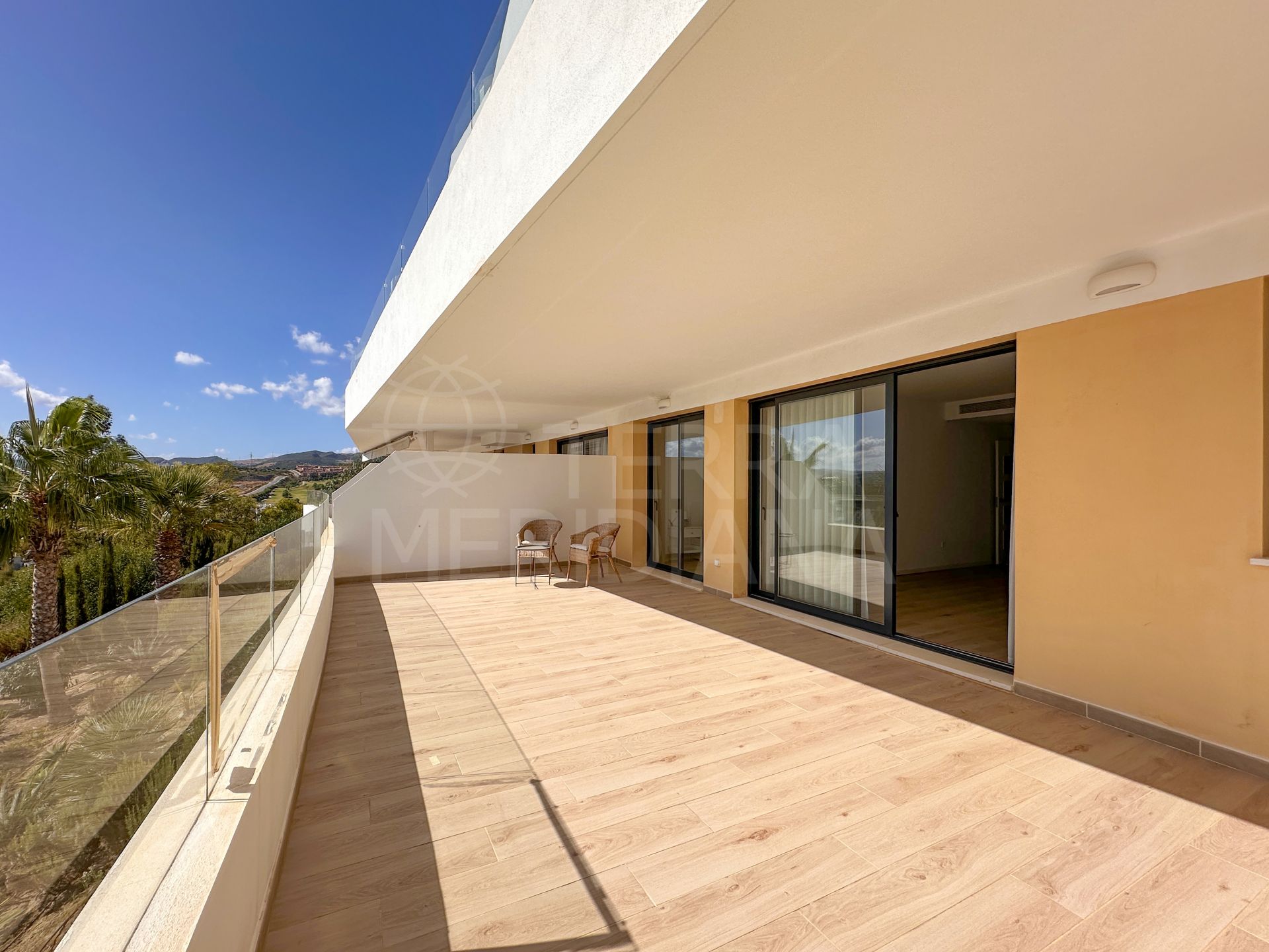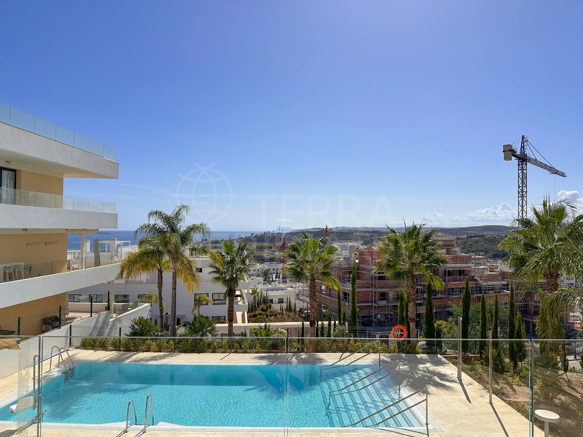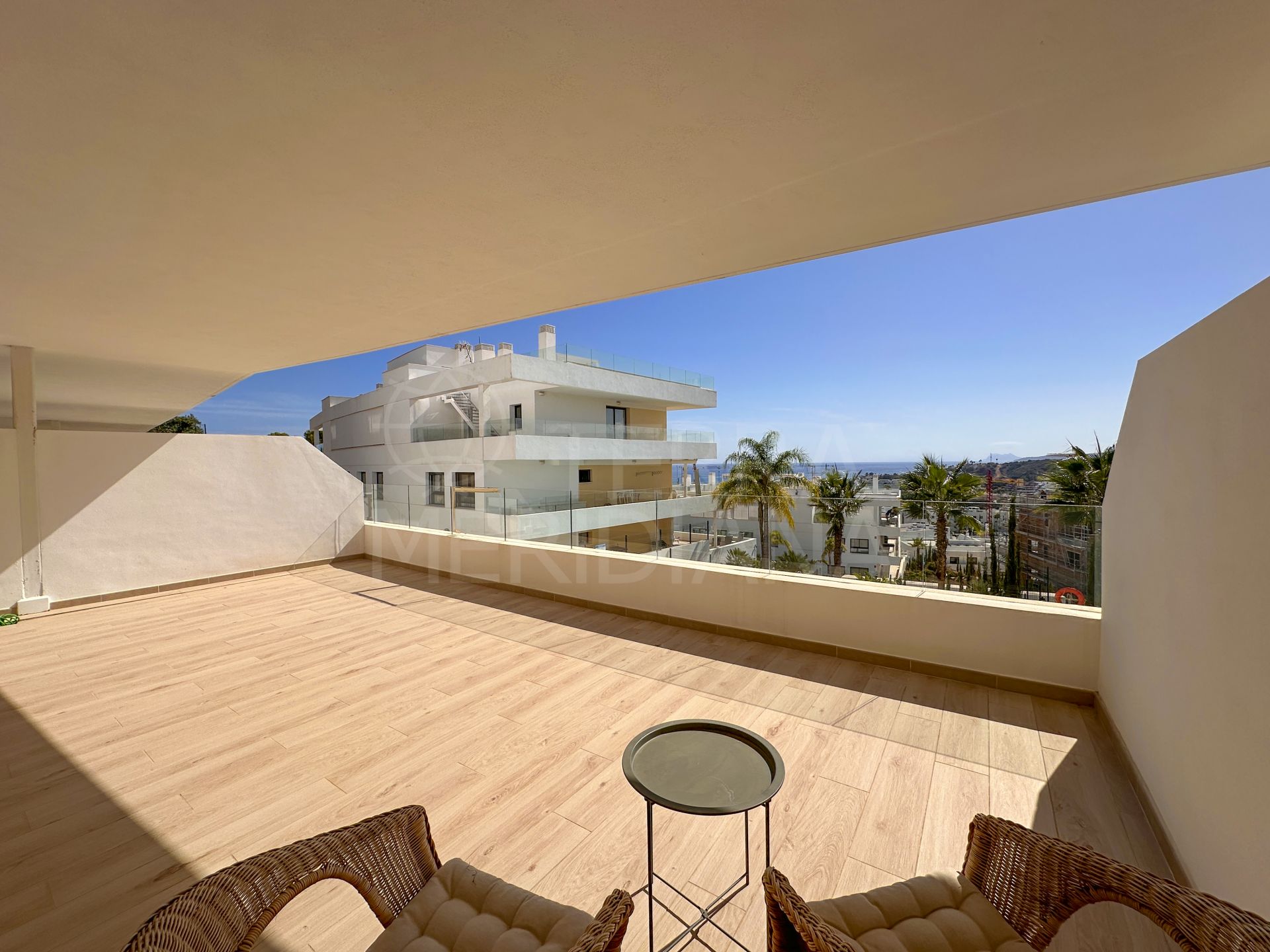 "Un élégant appartement de trois chambres orienté plein sud dans le complexe One80 à Estepona, offrant une vue panoramique sur la mer, de vastes terrasses et des prestations modernes à quelques minutes de la plage et du centre-ville."