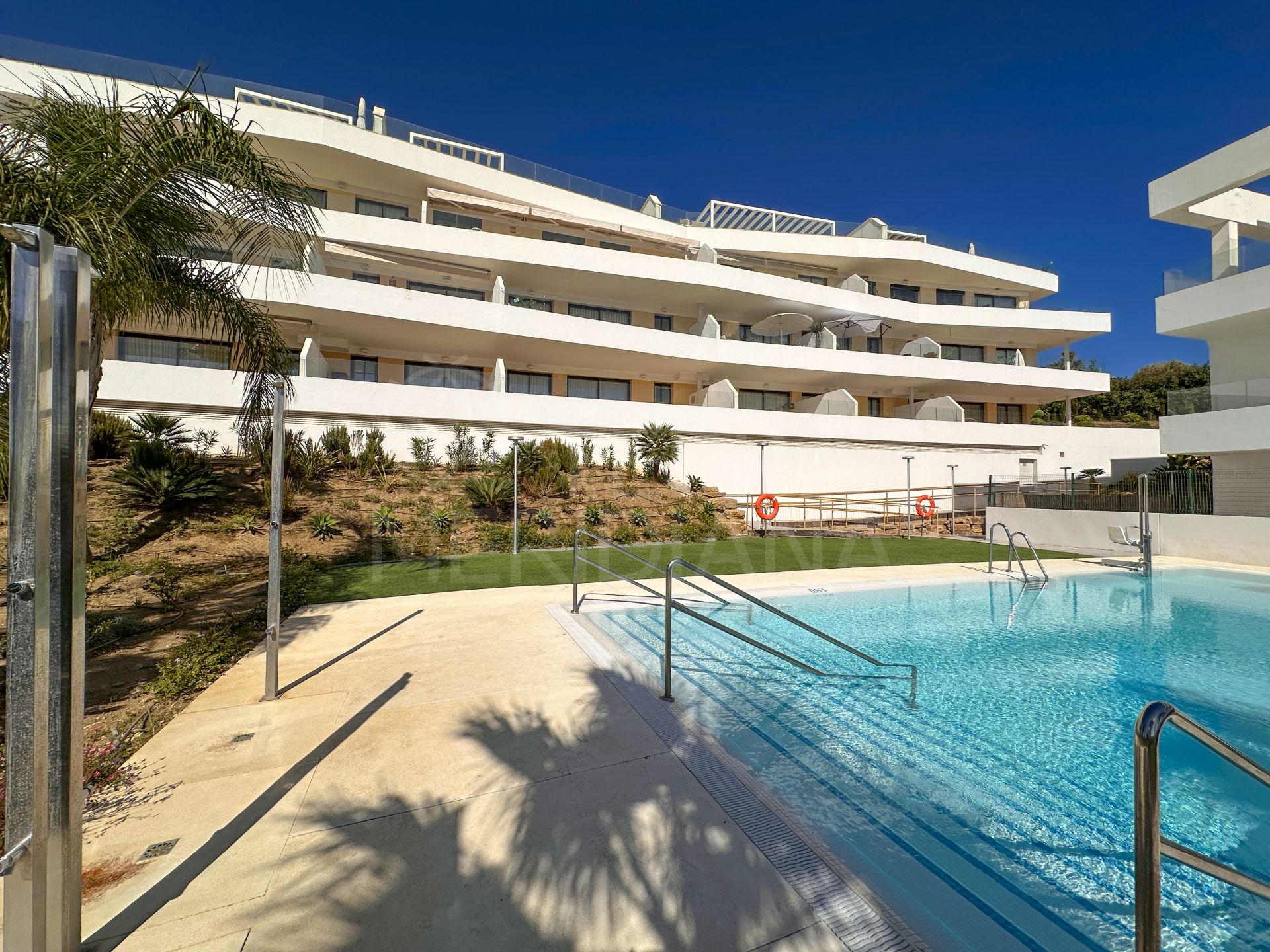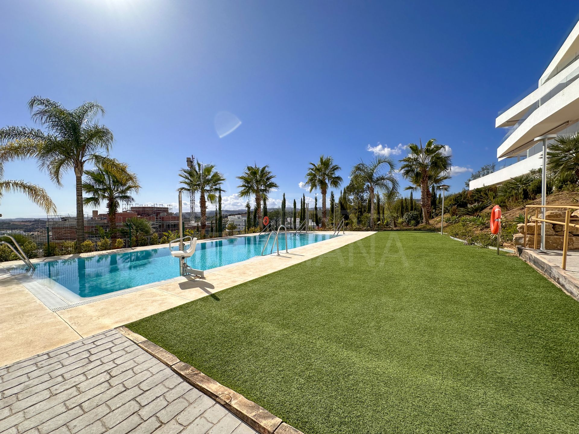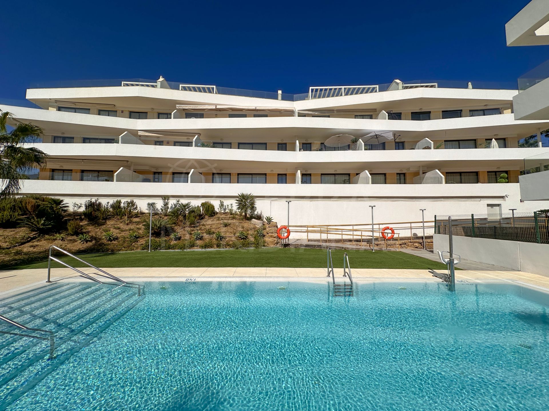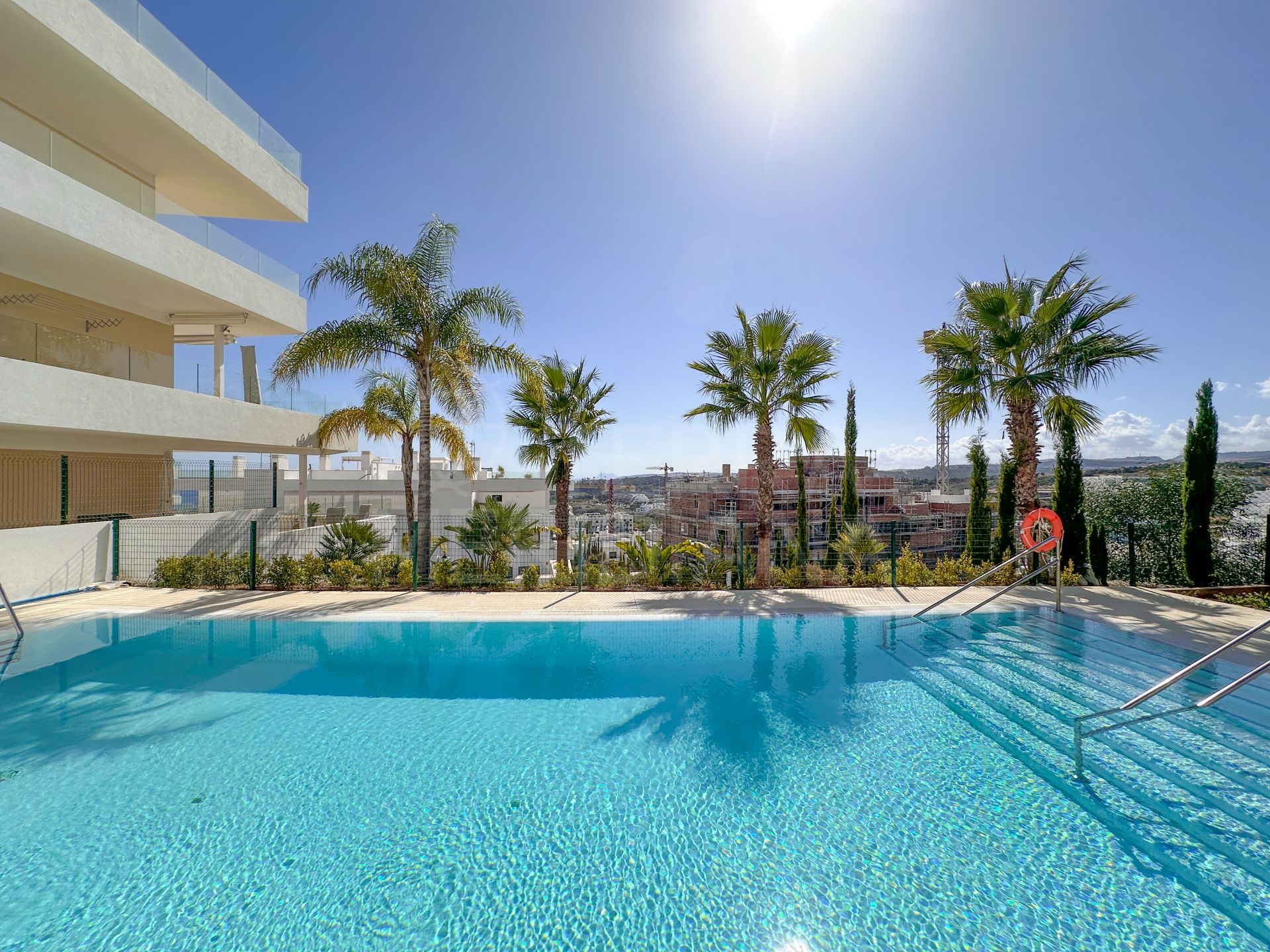 "Un élégant appartement de trois chambres orienté plein sud dans le complexe One80 à Estepona, offrant une vue panoramique sur la mer, de vastes terrasses et des prestations modernes à quelques minutes de la plage et du centre-ville."