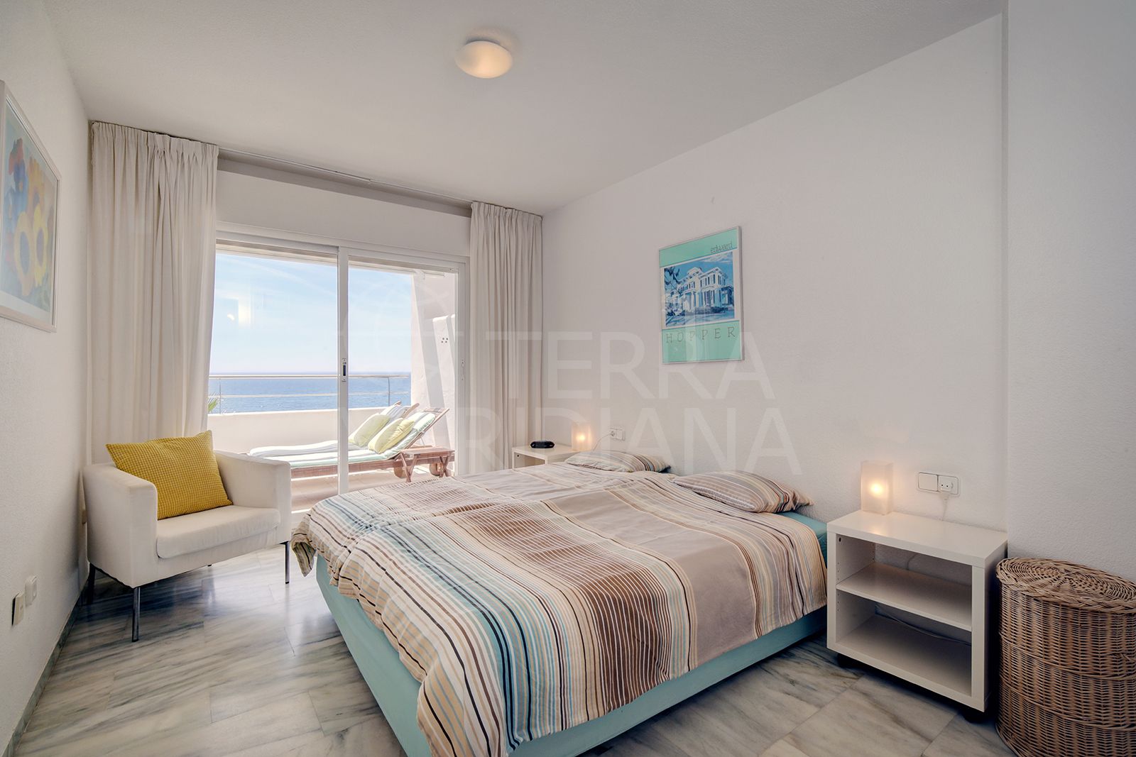 L’appartement dispose de 55 m² d’espace de vie soigneusement agencé, comprenant une chambre lumineuse et confortable, une salle de bains bien équipée et une généreuse terrasse de 22 m², idéale pour profiter des vues spectaculaires sur la mer. L’intérieur est doté de sols en marbre et de la climatisation, tandis que de grandes portes vitrées inondent l’espace de lumière naturelle et encadrent les vues exceptionnelles.