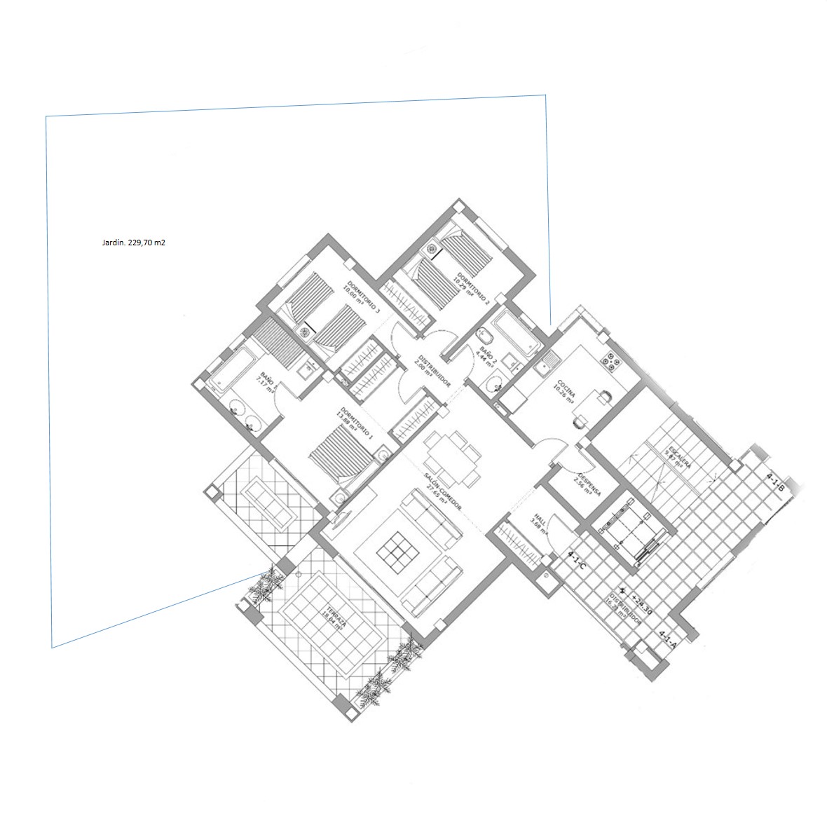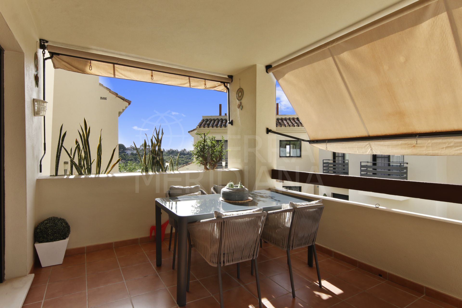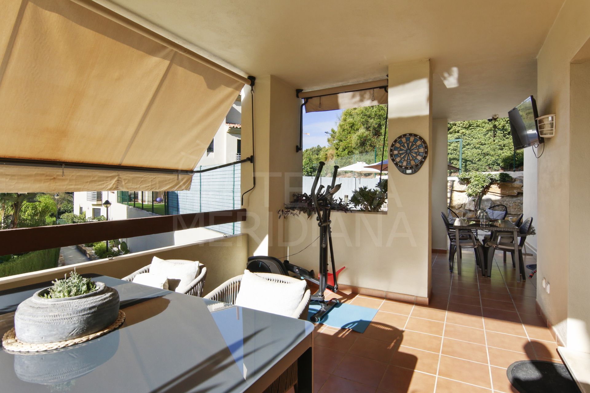 "Appartement spacieux de 3 chambres et 2 salles de bains à Selwo avec jardin privé de 230 m², deux terrasses, et accès aux piscines et jardins. À seulement 5 minutes d’Estepona et proche des plages et des golfs — idéal pour vivre sur la Costa del Sol."
