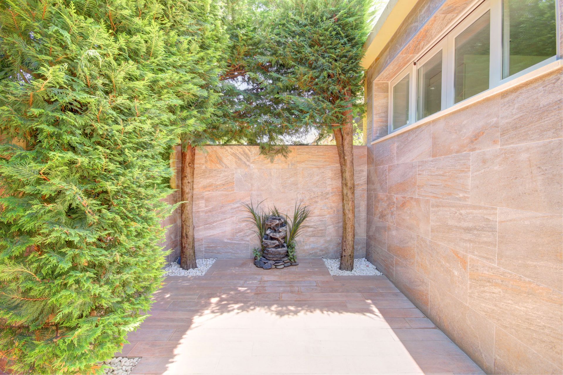 Située à l’extrémité de sa rangée, la propriété bénéficie d’une intimité accrue et d’un jardin enveloppant exceptionnellement grand d’environ 300 m². En entrant, vous êtes accueilli par un petit hall qui mène aux principales pièces de vie. La cuisine moderne, repensée et agrandie en 2018, présente des armoires blanches élégantes, un vaste espace de travail et suffisamment de place pour une grande table à manger. Entièrement équipée avec des appareils électroménagers haut de gamme, elle allie parfaitement fonctionnalité et style contemporain. Le salon en demi-niveau est spacieux et lumineux, doté d’une cheminée ouverte et de grandes portes vitrées s’ouvrant sur une terrasse couverte — idéale pour profiter de l’intérieur comme de l’extérieur toute l’année. Un WC invités complète l’agencement du rez-de-chaussée.