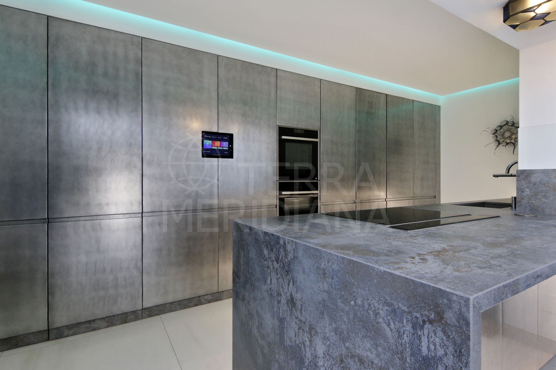 Le niveau inférieur révèle d’autres caractéristiques distinctives, notamment une cave à vin menant à une piscine intérieure remarquablement spacieuse, naturellement éclairée par son toit partiellement ouvrant. Pour compléter la propriété, un appartement d’invités entièrement équipé avec sa propre cuisine, salle de bains et espace nuit, idéal pour les visiteurs ou les séjours prolongés. Dans toute la maison, des matériaux haut de gamme, une menuiserie sur mesure et des systèmes de climatisation avancés garantissent confort et qualité. Avec la plage à seulement cinq minutes, le centre-ville animé à votre porte, et un accès facile au port, aux terrains de golf, aux commerces et à l’aéroport de Malaga, cette maison offre un style de vie exceptionnel dans l’un des quartiers les plus recherchés d’Estepona.