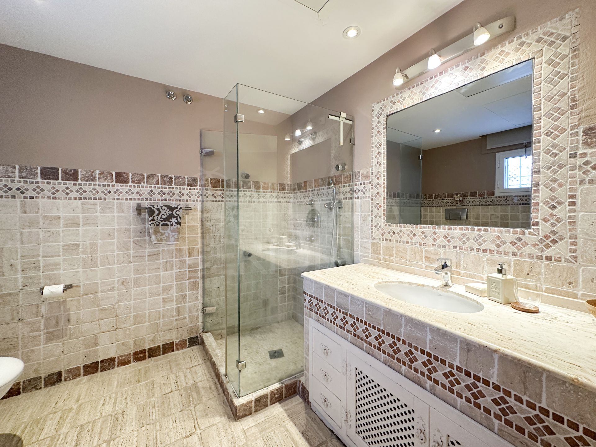 Le sous-sol présente un espace loisirs unique, comprenant une salle de jeux avec bar et espace salon avec accès direct au jardin. Un élément remarquable ici : deux grandes fenêtres intégrées au flanc de la piscine permettent à la lumière naturelle de filtrer à travers l’eau et créent une vue sous-marine originale. La propriété dispose aussi d’un belvédère surélevé avec pergola, parfait pour se détendre tout en profitant d’une vue spectaculaire. Idéalement située près des plages, golfs et commodités, la maison est à portée de Marbella et à moins d’une heure de l’aéroport de Malaga, ce qui en fait un choix remarquable tant pour une résidence principale que pour une résidence de vacances.