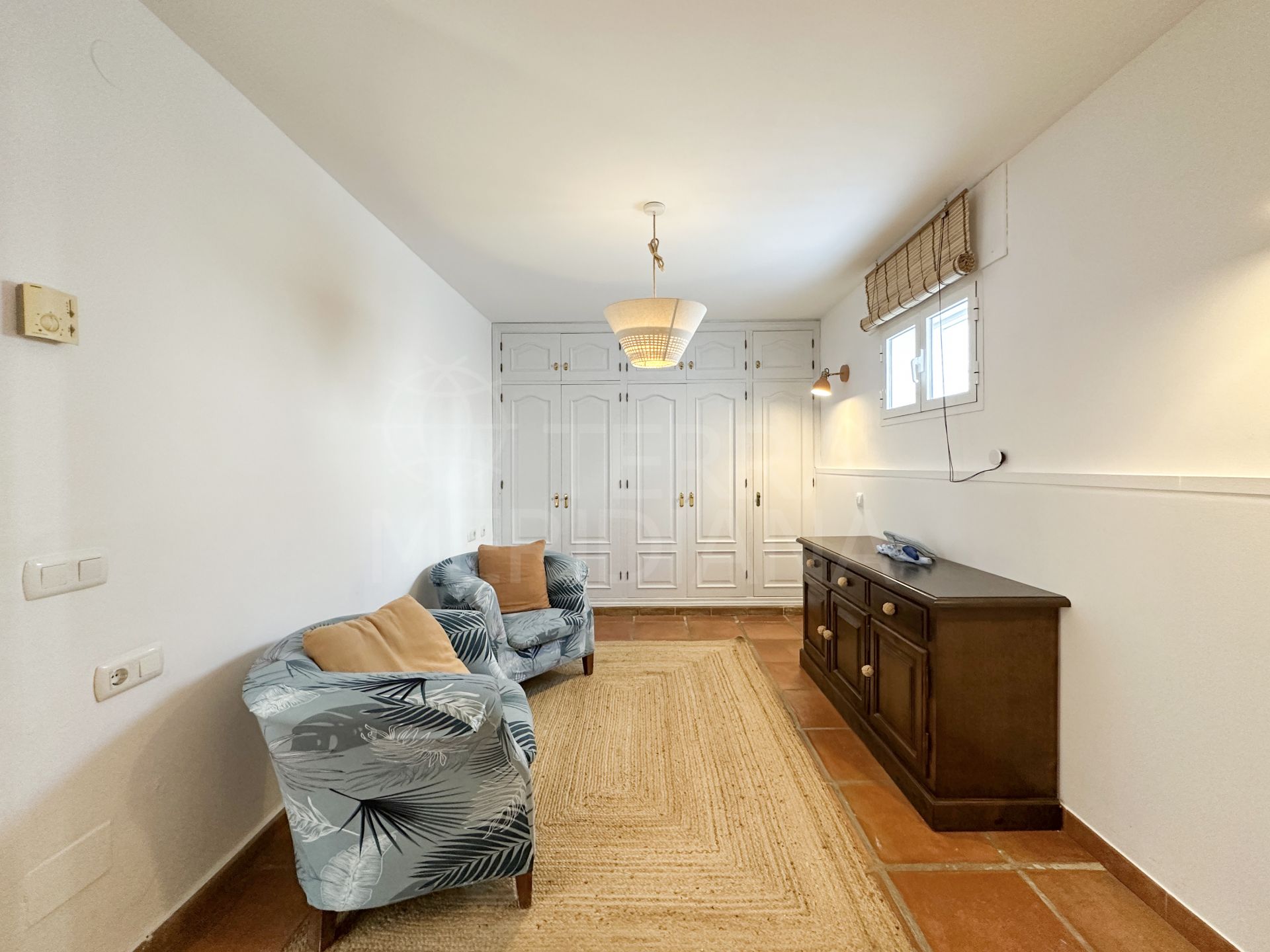 Cette résidence familiale impressionnante est située dans le secteur recherché d’El Padron, à seulement quelques minutes en voiture du centre d’Estepona. Implantée sur un vaste terrain privatif, la propriété est entourée d’arbres matures qui créent un environnement paisible et intime. L’essentiel du terrain, plat, est magnifiquement paysagé, avec de vastes jardins qui enveloppent la maison et offrent amplement d’espace pour la vie extérieure. Conçue pour profiter pleinement du climat ensoleillé de la Costa del Sol toute l’année, la villa dispose d’une grande piscine privée, de multiples terrasses, ainsi que d’un observatoire distinctif offrant une vue panoramique à 360° sur la campagne environnante.