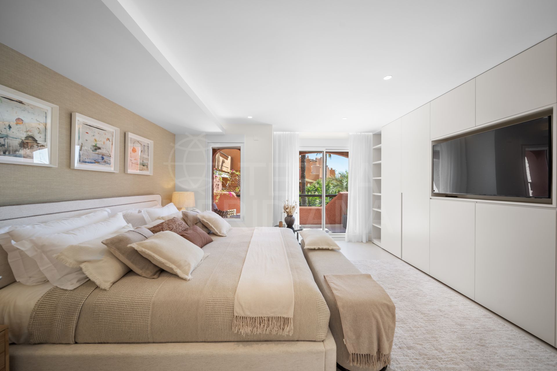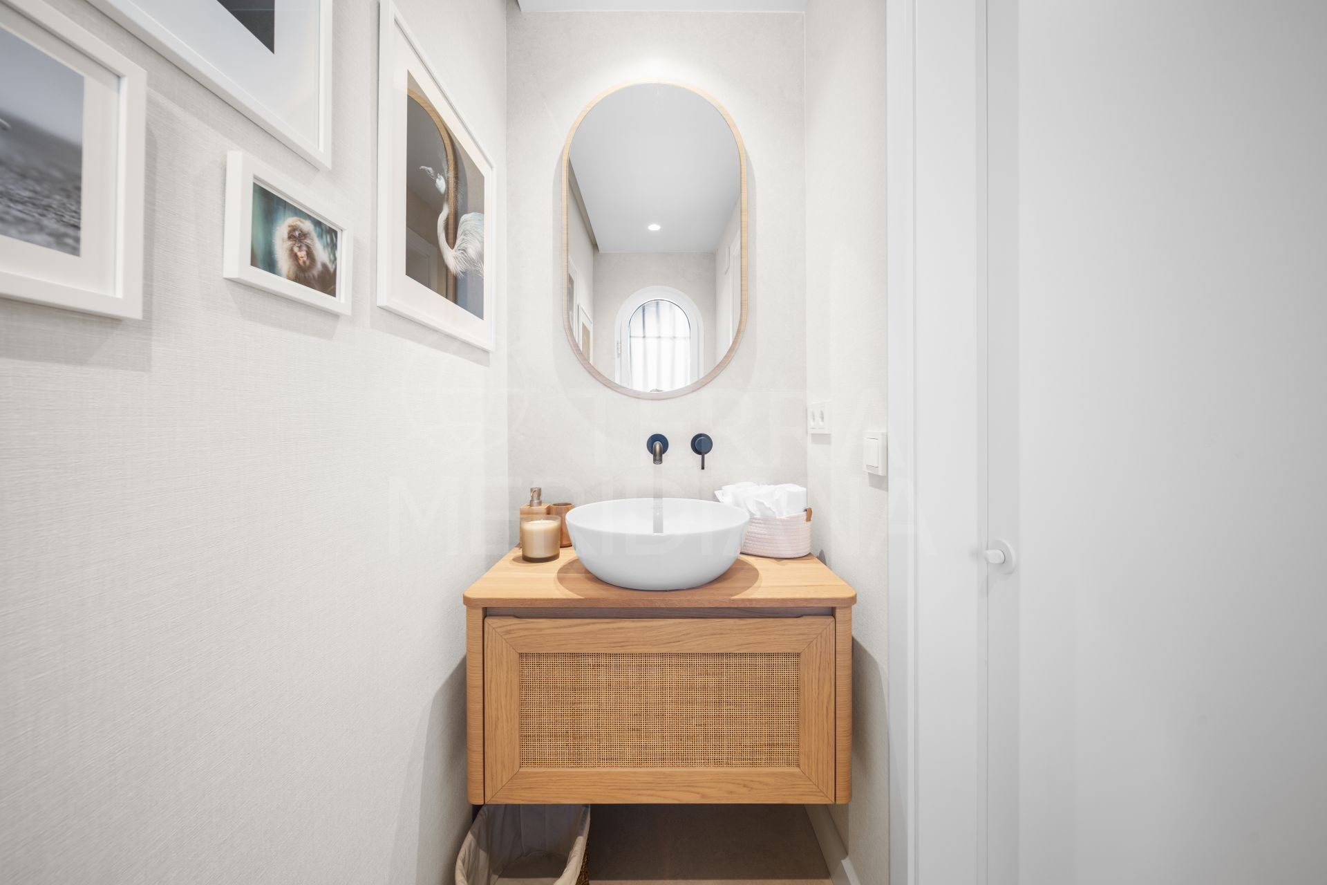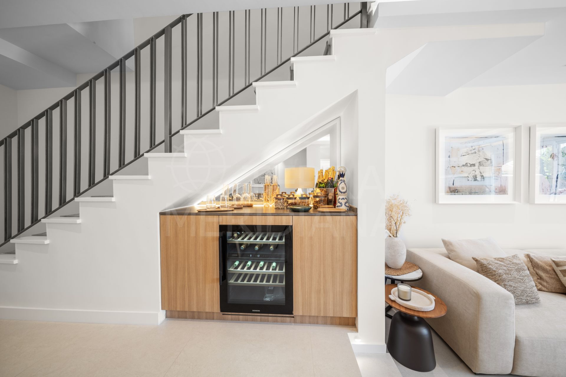 Cette somptueuse résidence clé en main est située au sein du très réputé complexe El Palmeral à Nueva Andalucía. Entièrement rénovée selon des standards exceptionnels, la maison de ville présente des finitions haut de gamme et une décoration raffinée dans tous ses espaces, avec des intérieurs soigneusement pensés, un mobilier de designer et des touches contemporaines élégantes.