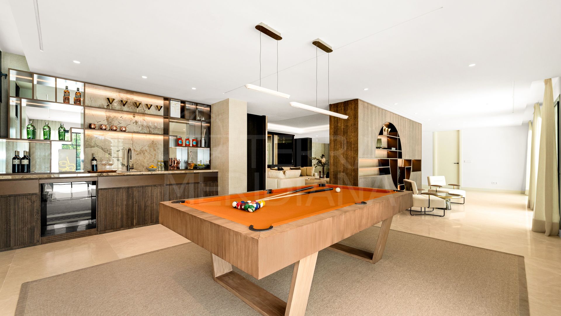 Pensée pour une détente absolue, la villa dispose d’un espace bien-être privé avec spa, sauna, hammam et salle de sport. Une terrasse à l’étage avec jacuzzi offre des vues panoramiques à couper le souffle, idéales pour admirer les couchers de soleil dorés de Marbella. Les espaces de loisirs comprennent une élégante salle de jeux et de détente avec billard, un bar sur mesure et une cave à vin climatisée.