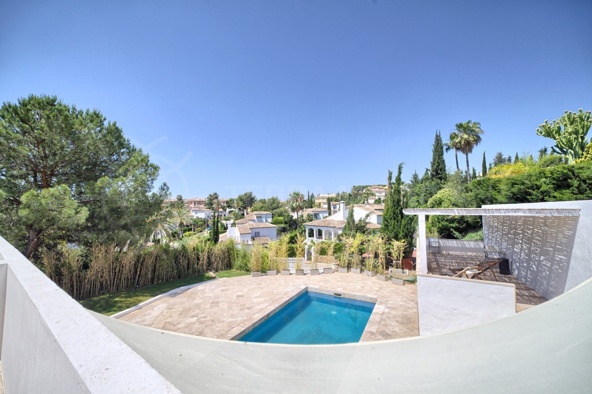 view 1 propertyThe quaint Spanish name for this part of Nueva Andalucía literally translates as ‘Apple H’ (or Block H). Set roughly at the boundary between the larger suburbs of Aloha and Las Brisas, which are defined by their prestigious golf courses of the same name, Super manzana H is a small but characteristic residential area close to all amenities but exuding an air of peace and privacy amid lots of greenery.