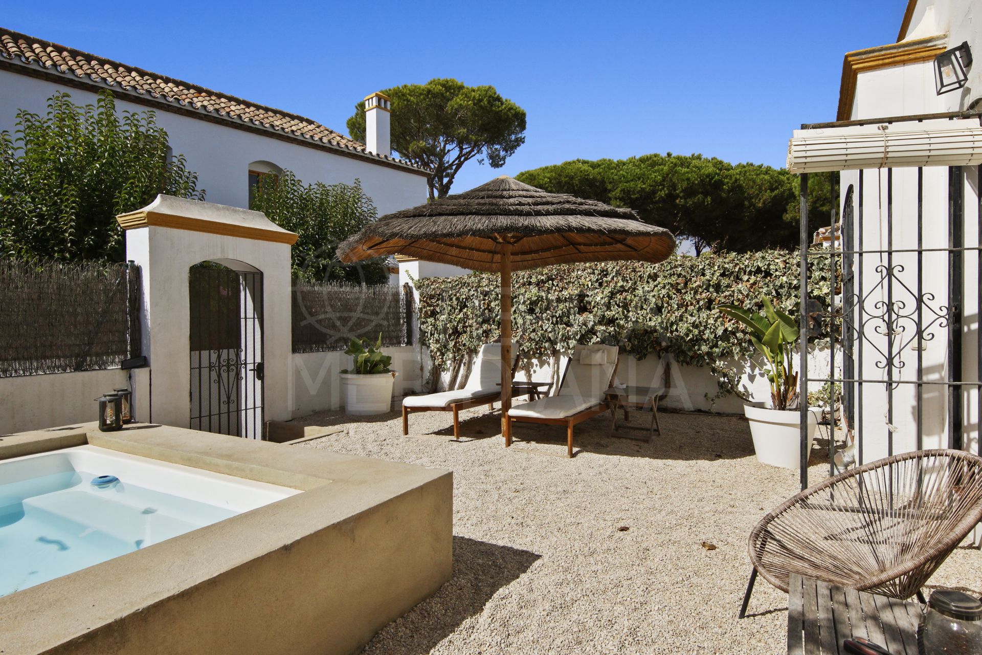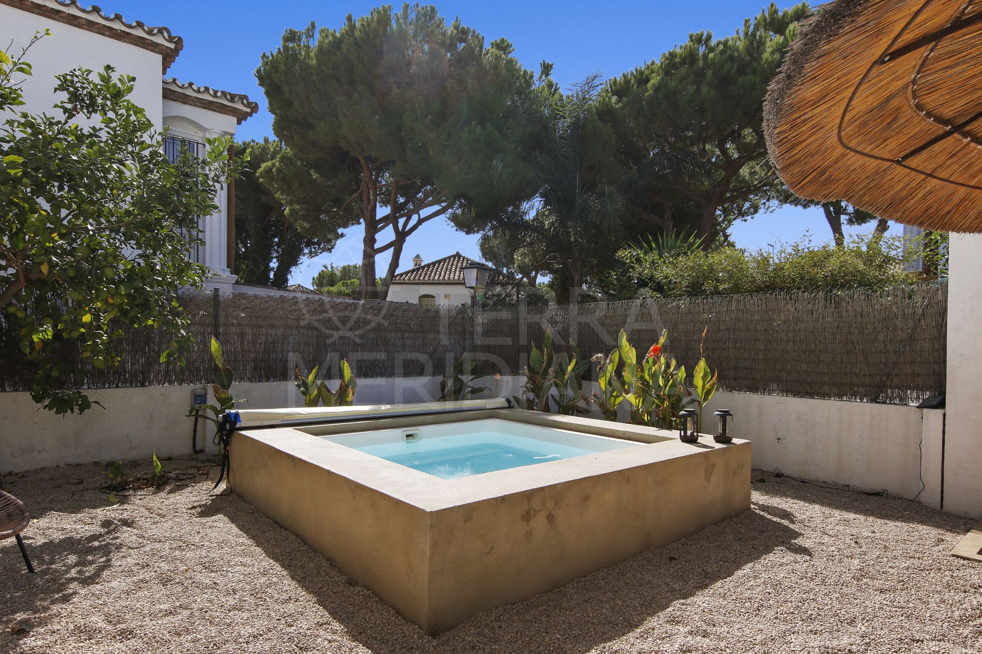 The true standout feature of the property is its spacious, fully renovated back garden. Stylishly finished with a pebble-finished floor and centered around a sizable plunge pool, sunbathing deck, and a chiringuito-style shaded area, the garden evokes the feeling of having your own private, luxurious beach retreat.