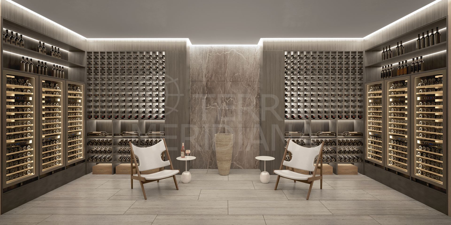 The planned residence will encompass a total built area of 2,482 square meters across three floors. It features 7 bedrooms and 9 bathrooms, a dedicated spa and gym area, and a private parking area with space for four cars. The design philosophy is centered on the connection of nature, space, natural light, and a sustainable lifestyle. Each room flows seamlessly, enhancing the sense of spaciousness and continuity. The expansive main living area, featuring high ceilings, interior courtyards, and the kitchen, opens generously onto an infinity pool and the stunning views beyond. Light is an ever-present element, flowing through the house in a symphony of nuances. The master suite is a lavish private retreat of almost 200 square meters, integrating the bedroom, dressing room, bathroom, and a private terrace, all with spectacular views. The lower floor is dedicated to wellness and entertainment, integrating the spa (also with marvelous views), gym, wine cellar, TV room, and vehicle accommodation.